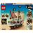 Set LEGO® pour les jeunes pirates – Le grand navire a des mâts, des voiles, une figure de proue et un gouvernail, et, sous le pont, il dispose d’une cabine, d’une cuisine, d’un espace pour la nourriture et les affiches et d’un atelier d’accessoires.